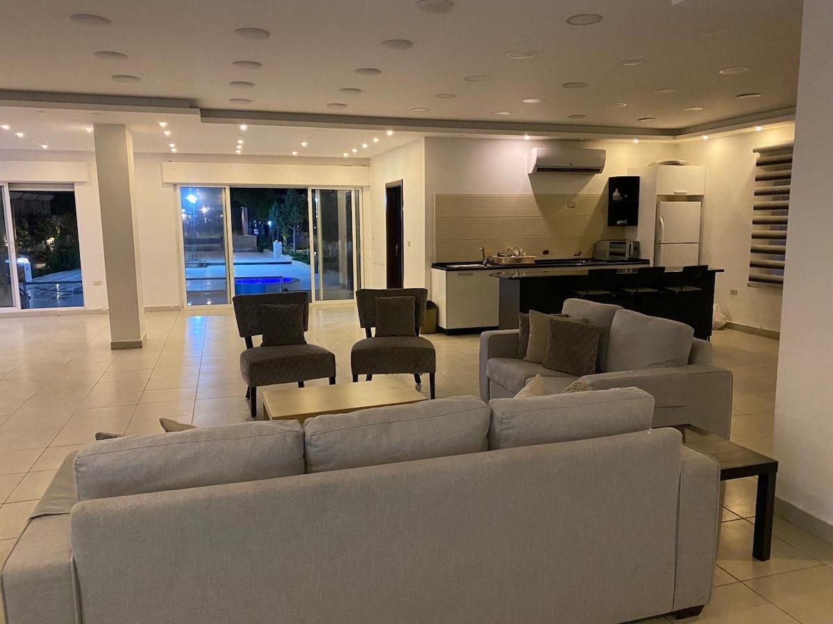 Unwind at this stunning mountain-top private resort with breathtaking views of the Zaia and Ajloun forests and the Amman skyline. Relax by the pool or in the lush garden surrounded by fresh mountain air. Located in historic Gilad, Balqa Province, just 20 km from Amman, with local shops and restaurants minutes away. Features include AC in all rooms, central heating, a rooftop terrace with 360° views, and an onsite gardener/janitor for your convenience.