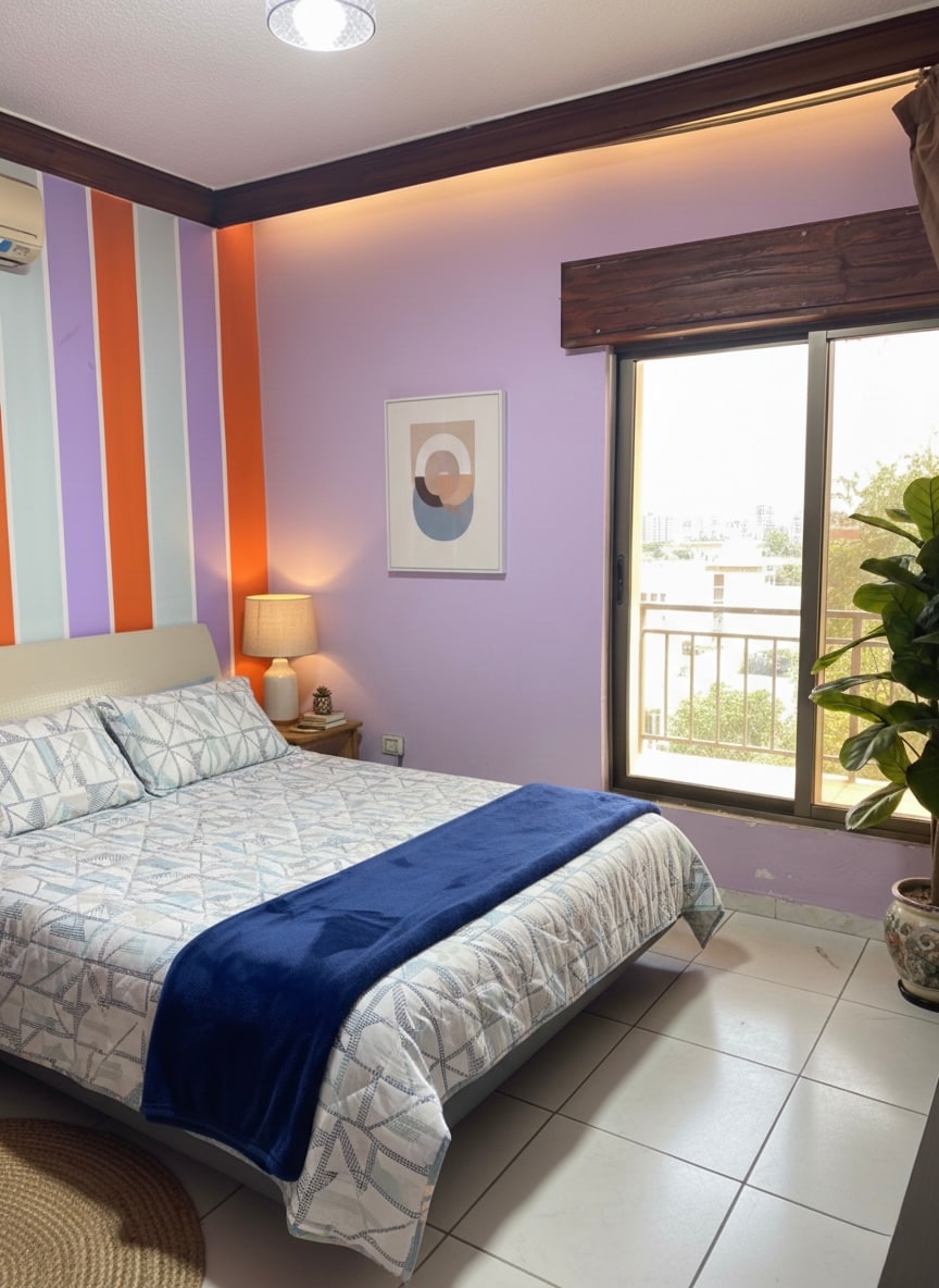 Escape to The Blue Room, a charming 2-bedroom apartment in Amman's historic Jabal Al-Weibdeh. This stylish, fully-equipped space comfortably fits 4-6 guests. Enjoy modern amenities like AC, high-speed internet, and a full kitchen. Nestled among quaint cafes and local shops, it's the perfect base for an authentic Jordanian experience. Free parking included.