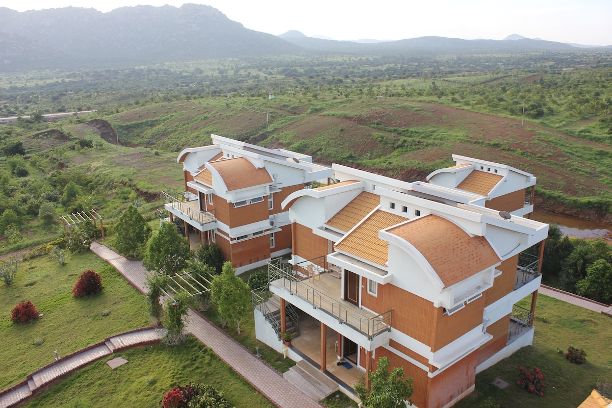 A serene hilltop retreat set against a backdrop of majestic history and tropical greenery. Located in the ancient city of Penukonda, about two hours from Bangalore, this resort is designed to blend historical charm with modern comfort.