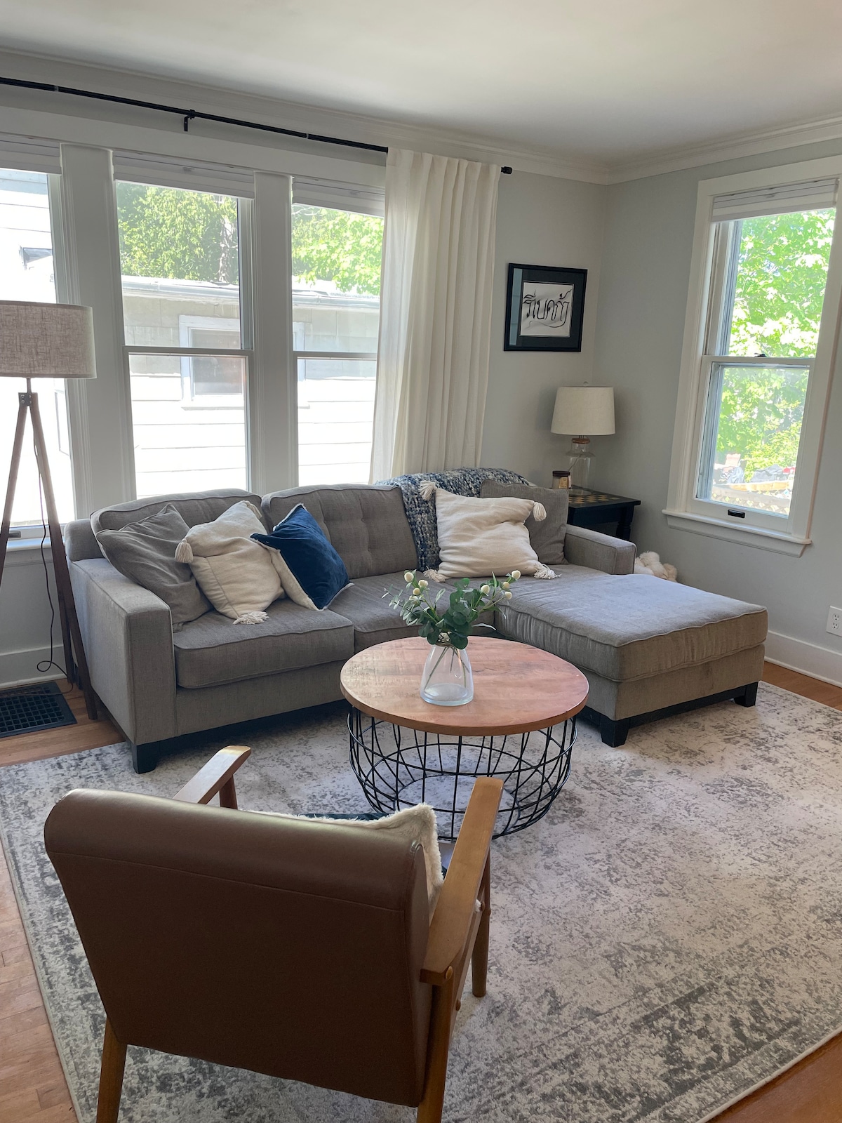 Modern & cozy 1BR condo in the heart of downtown Ann Arbor! Big windows, high ceilings & walking distance to the Big House, U of M campus, Michigan Theater, Kerrytown & Main St favorites like The Ark, Pretzel Bell, Blue Llama, The Grotto, Jolly Pumpkin, the Shinola Store, & more. Includes complimentary off-site downtown parking (~3 blocks away), Wi-Fi, in-unit laundry, and a smart TV. Perfect for game days, visiting your favorite Wolverine, or enjoying a vibrant weekend adventure in Ann Arbor!