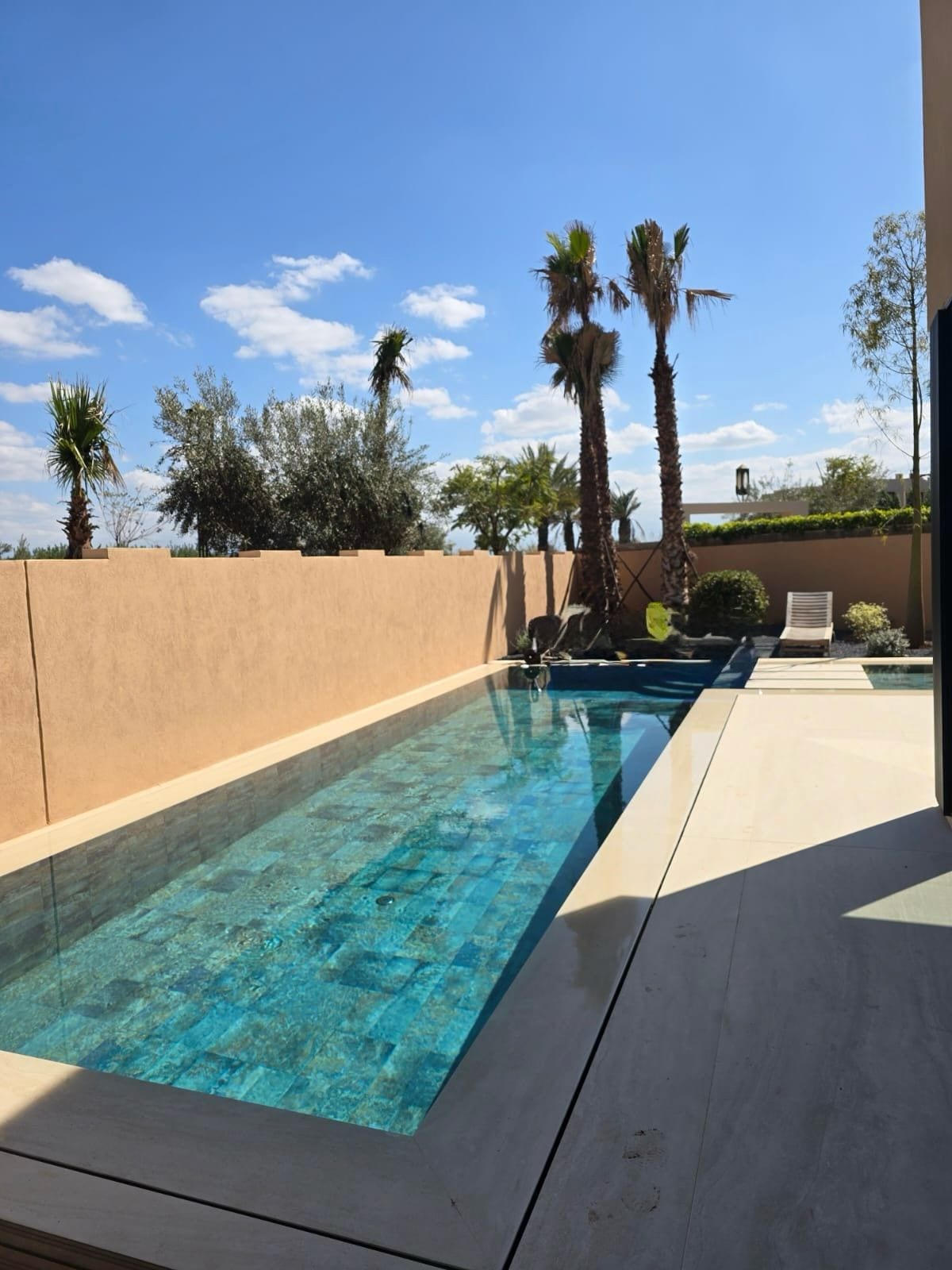 Stay in our modern 2-bedroom villa just few Minuntes from Marrakech. Relax by the private pool and enjoy the beautiful garden with apricot trees. The villa has fast Wi-Fi, a Smart TV, and air-conditioned bedrooms, each with a private bathroom.There is parking available . It’s less than 20 minutes from the city center and only 5 minutes from Marjane supermarket and McDonald's. Perfect for a peaceful and comfortable stay!