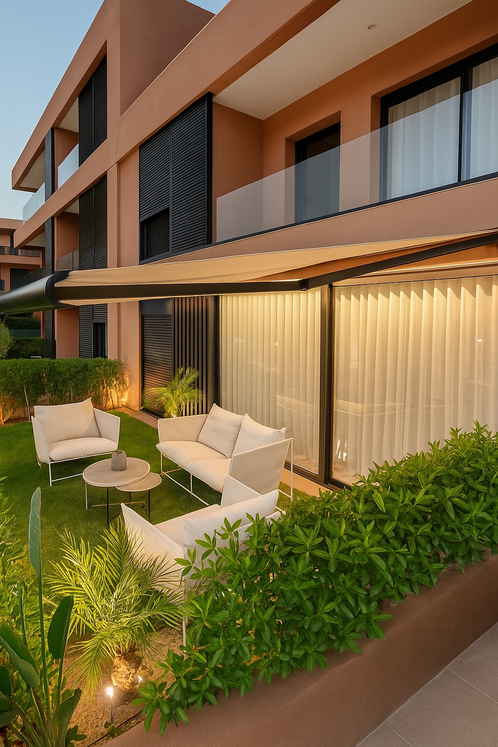 The Prestigia apartment is now part of the Holidays Family group. Treat yourself to a memorable getaway and discover a peaceful and luxurious retreat nestled in the vibrant heart of Marrakech. The apartment welcomes you into a haven of tranquility where every detail invites relaxation. Its refined decor, warm colours, and delicate fabrics create a unique and elegant atmosphere. The apartment is ideally located at the heart of a golf course, with a private garden and stunning views of the pool.