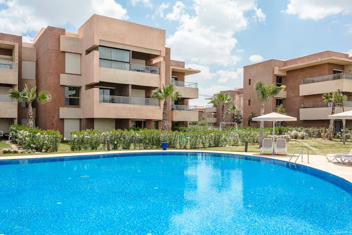 Beautifull spacious and bright apartment in the heart of a quiet and upscale residence in Marrakech Golf City with swimming pool and golf course nearby. The accommodation guarantees you the luxury touch of your stay in Marrakech. The apartment is located 5 minutes from Marrakech Menara airport. The Menara Mall and Almazar shopping center is 5min away as well as the Menara Garden. LA Koutoubia and JAMAA EL FNA square is located 10 minutes from the apartment. Excellent stay!!