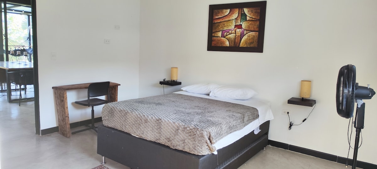 Iraka Villa de Verano. Exclusiva cabina de roble rodeada de naturaleza y vistas increíbles. Ubicada en un bosque seco tropical donde podrás disfrutar de clima cálido durante todo el año. A solo 1 hora y 15 minutos de Medellín. Minipool privada para refrescarte durante el día y con opción de calefacción para disfrutar de una noche en pareja. Cómoda habitación con A/C y cama king con sábanas 100% algodón. Baño al aire libre donde podrás disfrutar de una relajante ducha con una hermosa vista.