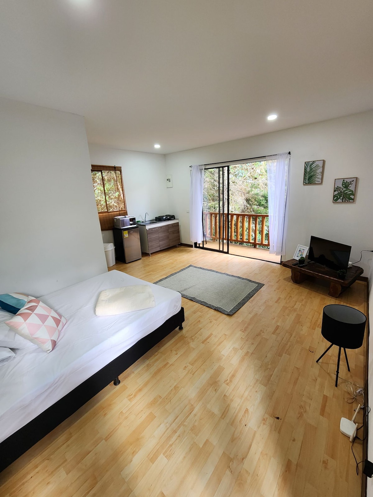 Es una cabaña de madera rodeada de árboles, animales y arroyos que hacen que tu estadía sea tranquila, placentera e inolvidable. El lugar perfecto para unos días de descanso en familia, en pareja o con amigos, apreciando hermosos amaneceres y atardeceres Exclusivamente para nuestros visitantes, alejada del bullicio de la ciudad, totalmente independiente y privada sin vecinos a tu alrededor, tendrás la visita de los maravillosos animales como el barranquero, ardillas, tucanes y otras aves.