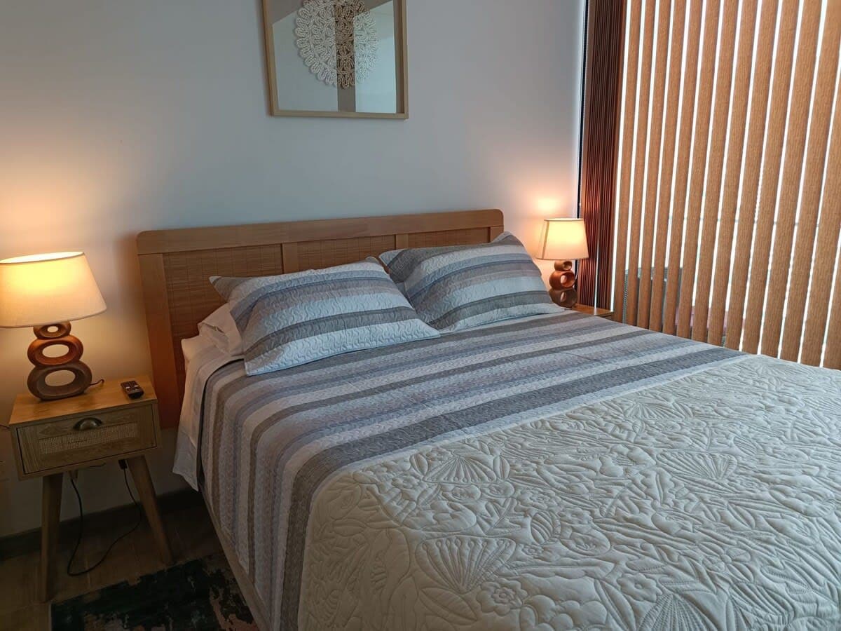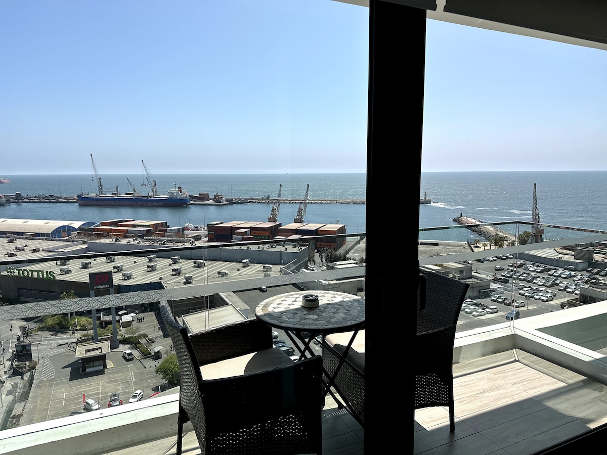 Hermoso departamento diario 1D 1B /piso 12 - 1 Habitacion matrominial cama king ( se puede separar en camas individuales) -1 baño en suite -Cocina Equipada -Wifi y Cable. -Balcon con vista al mar. cuenta con malla de seguridad. -Estacionamiento privado. -Espacios comunes como piscina, gimnasio, sala de trabajo, salas de diversion. - Alrededores cuenta con supermercado, bencinera, mall portada norte - A 20 minutos de Aeropuerto Andres Sabella y EXPONOR -Chek in flexible -No se admiten mascotas