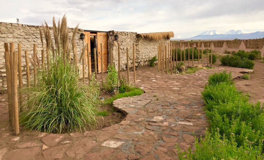 In the middle of the oasis Tulor, an organic self-sustaining house built of stone and mud, with a cozy interior design. Four floors, a tower and livable roof allow for many astonishing sights of the Salar de Atacama, the Cordillera de la Sal (Salt mountain range) and the Licancabur volcano. A wonderful place to rest, enjoy the silence and astronomical observation. Nearby the Cejar Lagoon and the Valley of the Moon (Valle de la Luna).