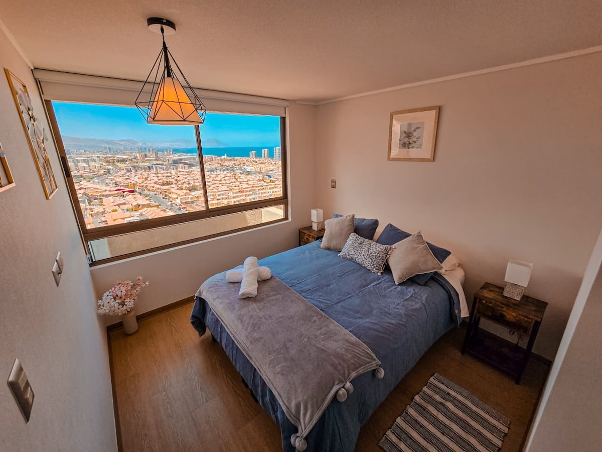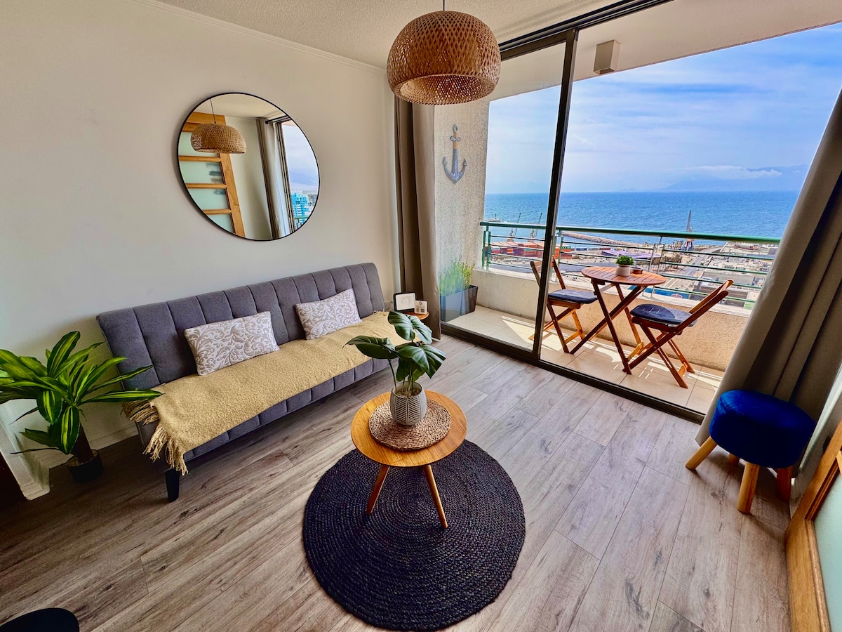 Dpto. Entrada autónoma, vista al mar y parking privado indoor. full amoblado, sector lider express A 10 min del centro. A 2 cuadras a pies de super lider express. A 5 min de la Municipalidad. A 3 min del Hospital Regional. A 3 min del terminal de buses. A 30 min del aeropuerto. Wifi y televisor smart tv de 43”, con Netflix, HBO premium. Cocina full equipada; Hervidor, horno eléctrico, microondas y lavadora secadora sillón reclinable. Silla reposera con vista al mar Conserjería 24 hr