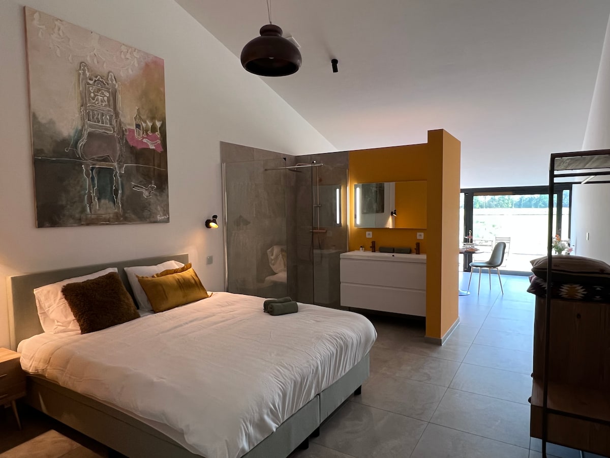 If you are a lover of nature and you prefer privacy, then The Art of Ein-Stein is the perfect place for you. The farm is located in the middle of the nature and woods. Breakfast is possible, please ask. There’s an idyllic sleeping place, rain shower and salon upstairs. Downstairs there’s an installed kitchen where you can cook, a dining place and a big lounge. Many bicycle and walking routes. You can rent 2 electric mountainbikes!
