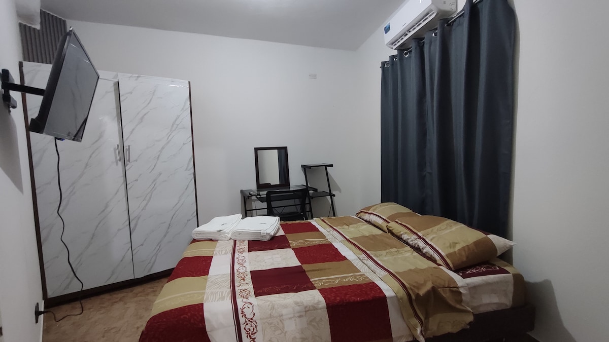 Descubre la comodidad en esta suite privada, ubicada en urbanización privada, donde el detalle está pensado para tu conveniencia. Un espacio moderno, para una estancia independiente. Tu Espacio Incluye: Aire/A para regular la temperatura a tu gusto. Zona de Kichinet equipada con cafetera y tostadora. ¡El café de la mañana está cubierto! Internet: Conexión garantizada para trabajo remoto o entretenimiento. Baño en Suite: con agua caliente. Clóset espacioso y mueble de TV NO FUMADORES