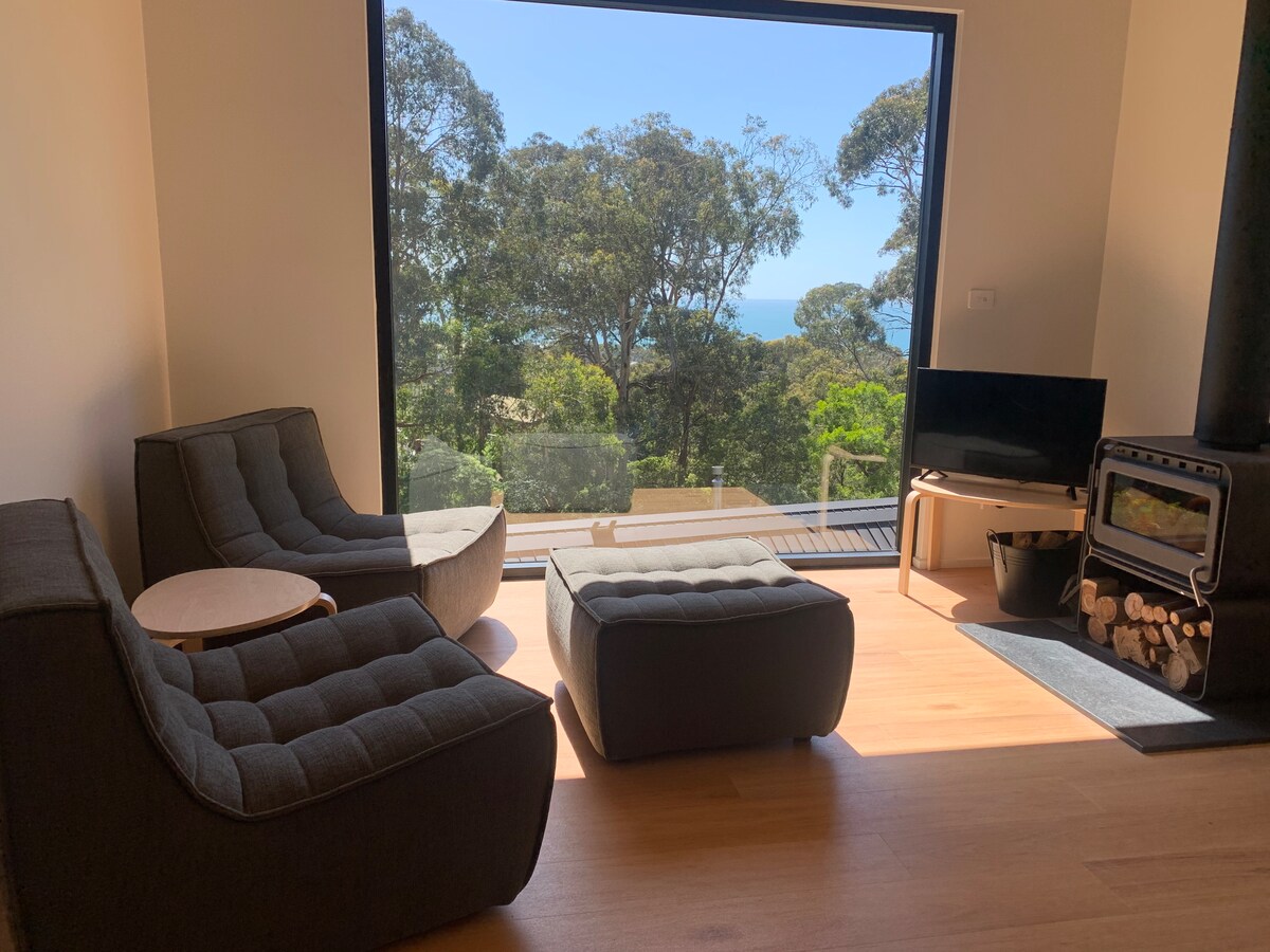 Designed by award winning architect Simone Koch, the cabin is about cooking, eating, drinking wine while being able to open right up to the beautiful Australian bush... The toilet is an outdoor organic system (based on the national park's toilets). Located at the start of the Great Ocean Road, only ten minutes from Torquay or famous Bells Beach. Complementary bottle of pinot from the winery on arrival. Please provide your own fire wood.