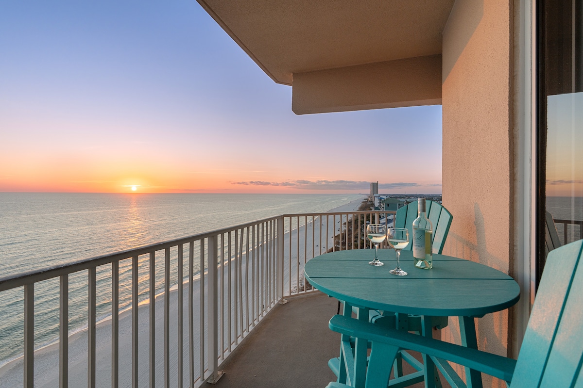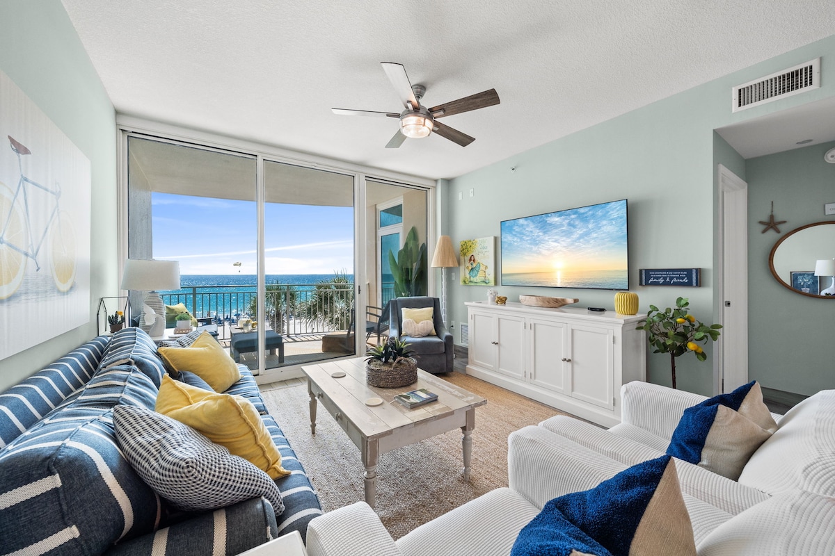 Gulf Getaway PCB | 1BR/2BA 17th floor condo w/ epic Gulf views! FREE beach setup (2 chairs+ umbrella, Mar–Oct 2026). Picture yourself lounging on the balcony, splashing in the pool, or grilling dinner after sunset. Super-fast WiFi system, 2 smart TVs, washer/dryer, well-equipped kitchen, & electric grill on the balcony. Resort hot tub, fire pit, and good vibes included. $50 Resort Pass (0–1 car/per stay) required, $100 for 2 paid separately. Weekends book fast—but we have great weekday rates!