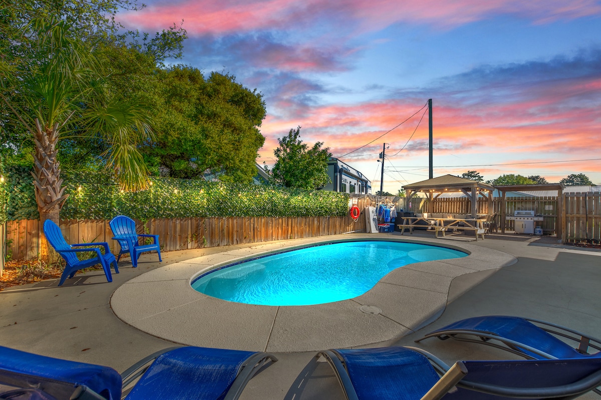 私人泳池-步行可至海滩-宠物!