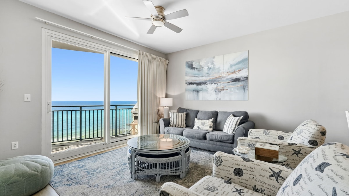 Wake up to the sound of gentle waves and step out onto your private balcony to panoramic ocean views—your perfect beachfront escape awaits. This upscale condominium offers a beautifully appointed one-bedroom layout plus a bonus bunk room, complete with a private ocean-view balcony. Located on the 10th floor and less than half a mile from Pier Park, this residence provides both convenience and breathtaking Gulf-front views.