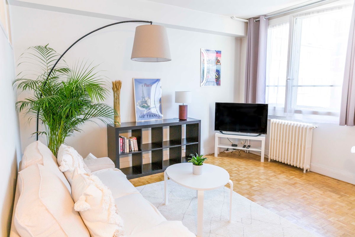Refurbished 1-Bedroom Apartment Near Palais des Congrès & Champs-Élysées Ideally located just two metro stops from the Champs-Élysées, Situated near the Palais des Congrès, the unit features a bright living room, a cozy separate bedroom with queen size bed, and a well-equipped kitchen. Easy access to Metro, this apartment is perfect for couples looking to enjoy Paris at its finest. Surrounded by shops, restaurants, and major attractions, you’ll have the best of the city at your doorstep!
