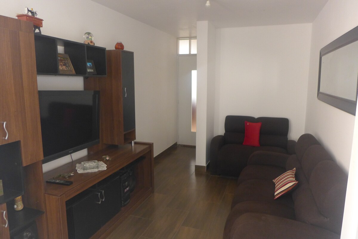 Relájate con toda la familia en este tranquilo lugar para quedarse. Cuenta con dos habitaciones con cama de dos plazas y otra de plaza y media, tv de 50” en la habitación principal y ropero empotrado, cocina amoblada y equipado, dos baños amplios y linda terraza. En el tercer piso.