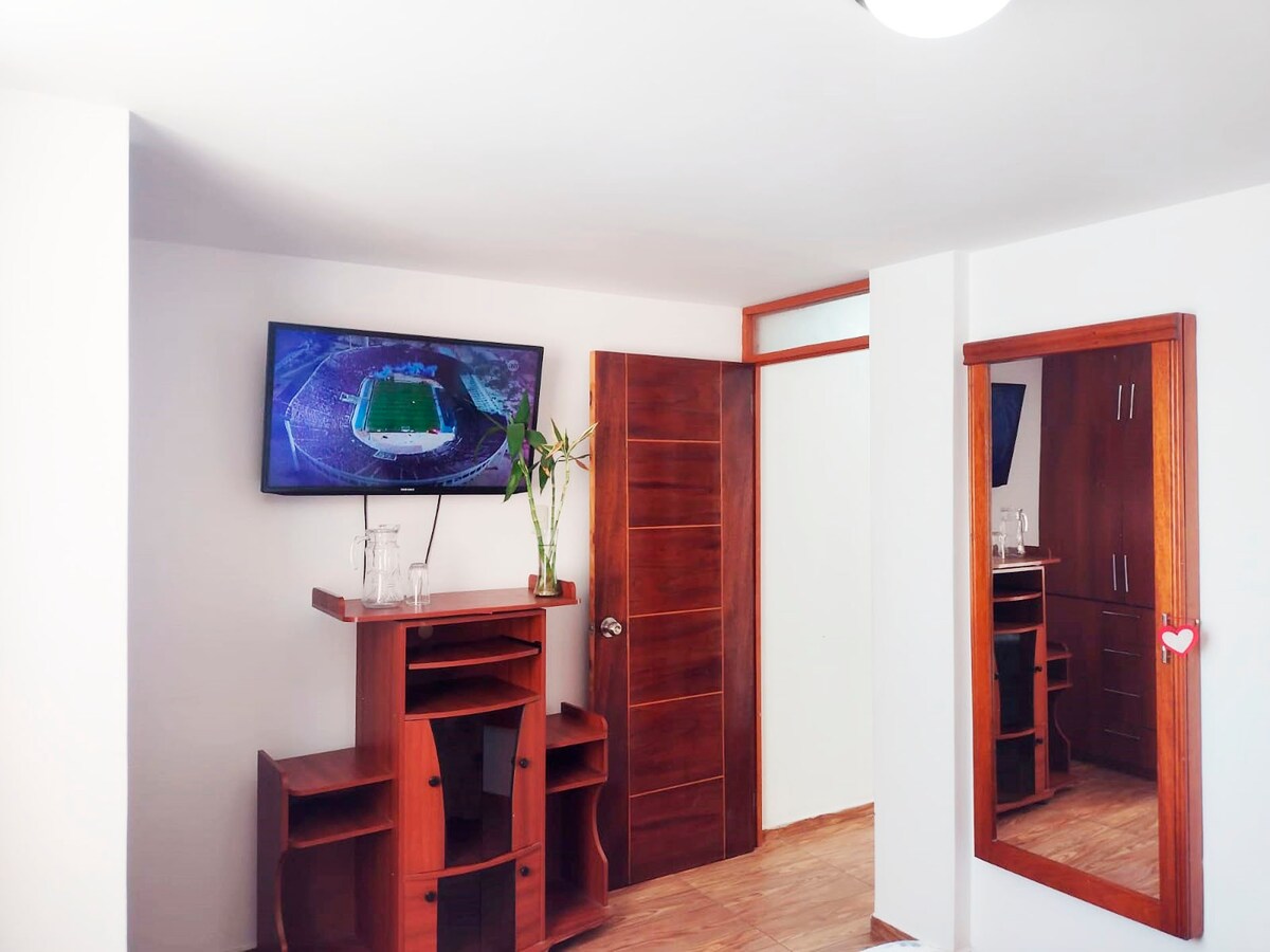 En éste loft con jacuzzi vivirás una experiencia única. Apartamento en una zona tranquila, frente a Municipio, con todas las comodidades y buenos acabados. 1 habitación con 1 cama, 1 ducha con jacuzzi, entrada independiente, wi-fi, televisor smart , mini escritorio para teletrabajar, 1 ambiente con cocina y sala (con excelente vista). Paraderos de combis y taxis, a 7 min en carro de malls, a 15 min en carro del centro de la ciudad, a 15 min de campiña