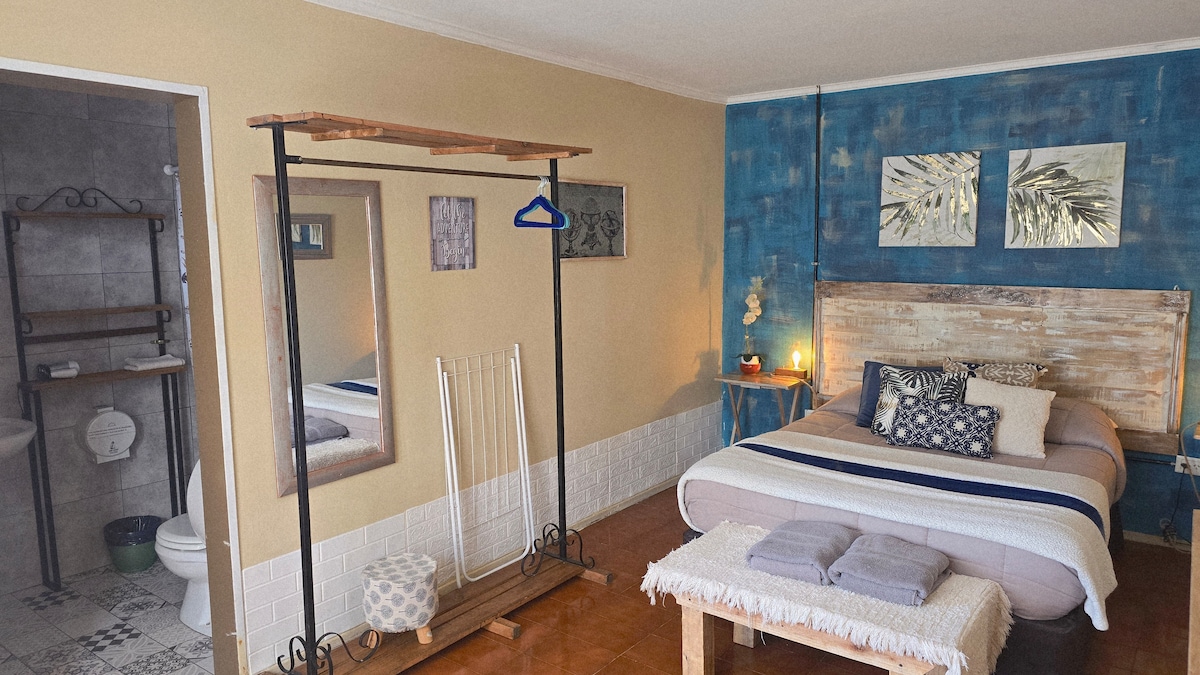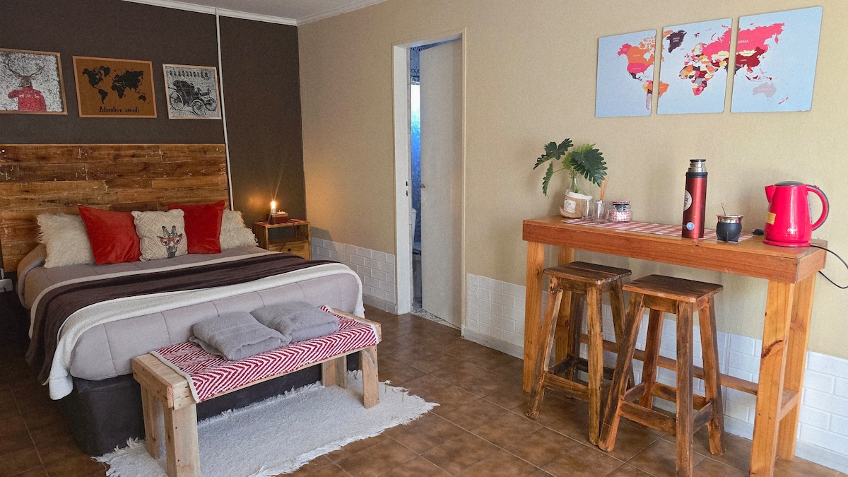 seguridad, secador de cabellos, frigobar, pava electrica) Piscina, cocina compartida completa y con infusiones disponibles, Parrilla exterior, sillones exteriores, dispenser de agua filtrada disponible en tu estadia. Te encantará la decoración con artesanias locales de este encantador lugar para hospedarte. Este lugar único tiene su propio estilo.