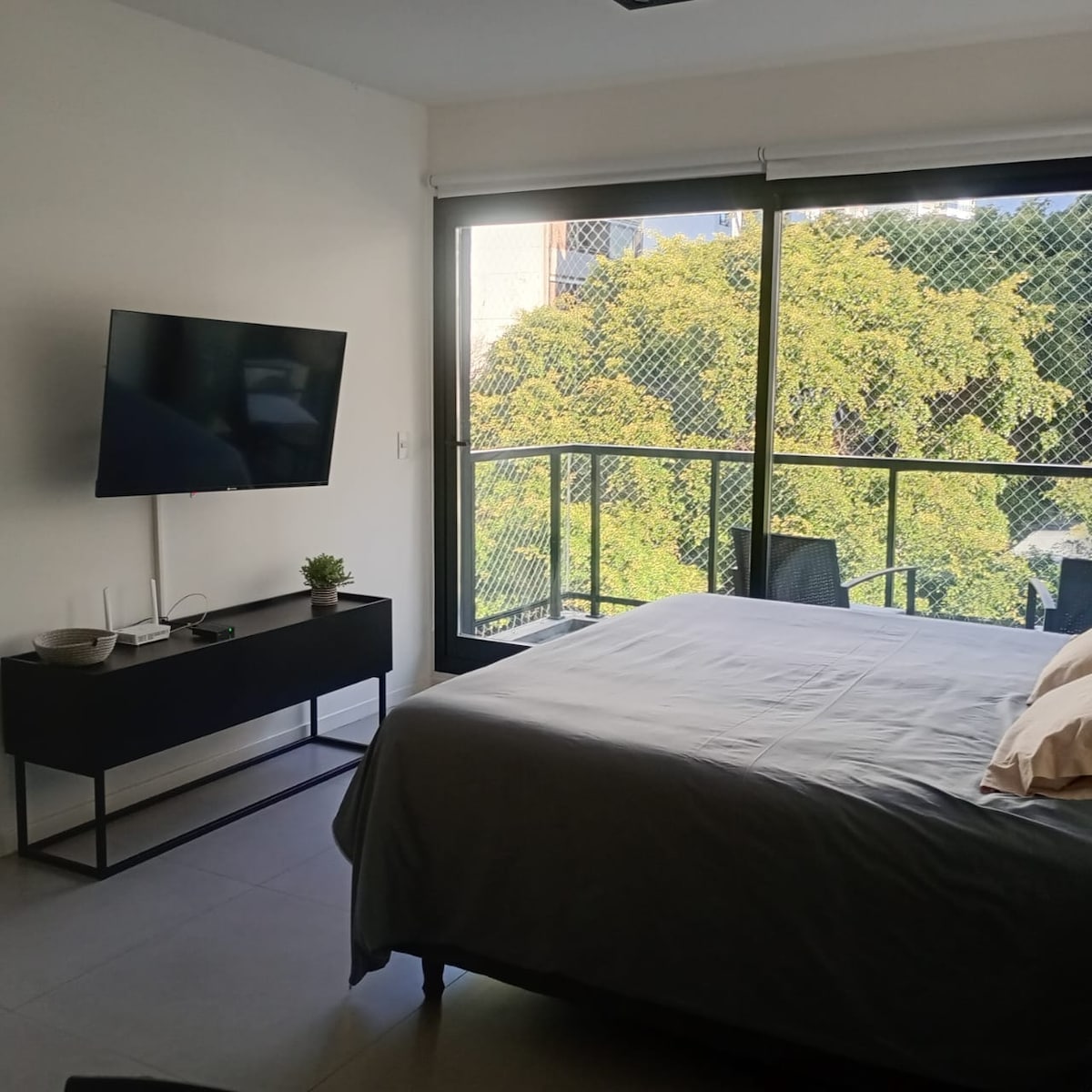 Brand new studio. 49m2. Fully equipped. In the heart of the most attractive neighborhood in Buenos Aires: Palermo. Quiet and comfortable, with a large window and balcony facing the street with sunlight and trees. The neighborhood is vibrant and appealing - you can't miss visiting Palermo if you're in Buenos Aires. The location is very convenient and safe. It's just a few blocks from Plaza Italia, La Rural, shopping centers, Bosques de Palermo, and three blocks from the subway. Wifi: 300mb.