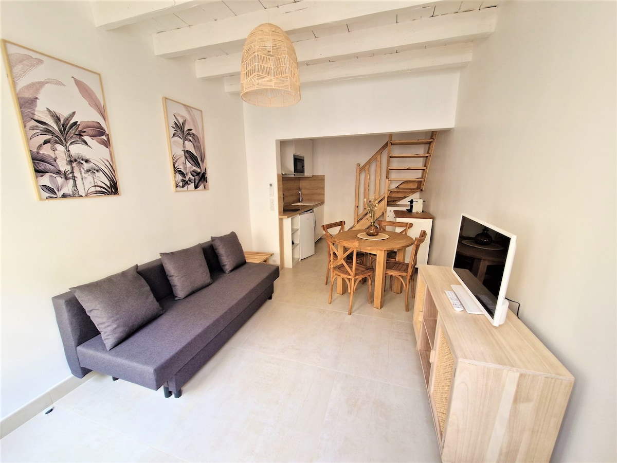 Nous vous accueillons dans un studio de 30 m2, indépendant, et situé au rez de chaussée d'une maison de caractère nichée en plein centre historique. Totalement rénové, cet espace mélange à la fois le charme de l'ancien et le confort de la modernité!