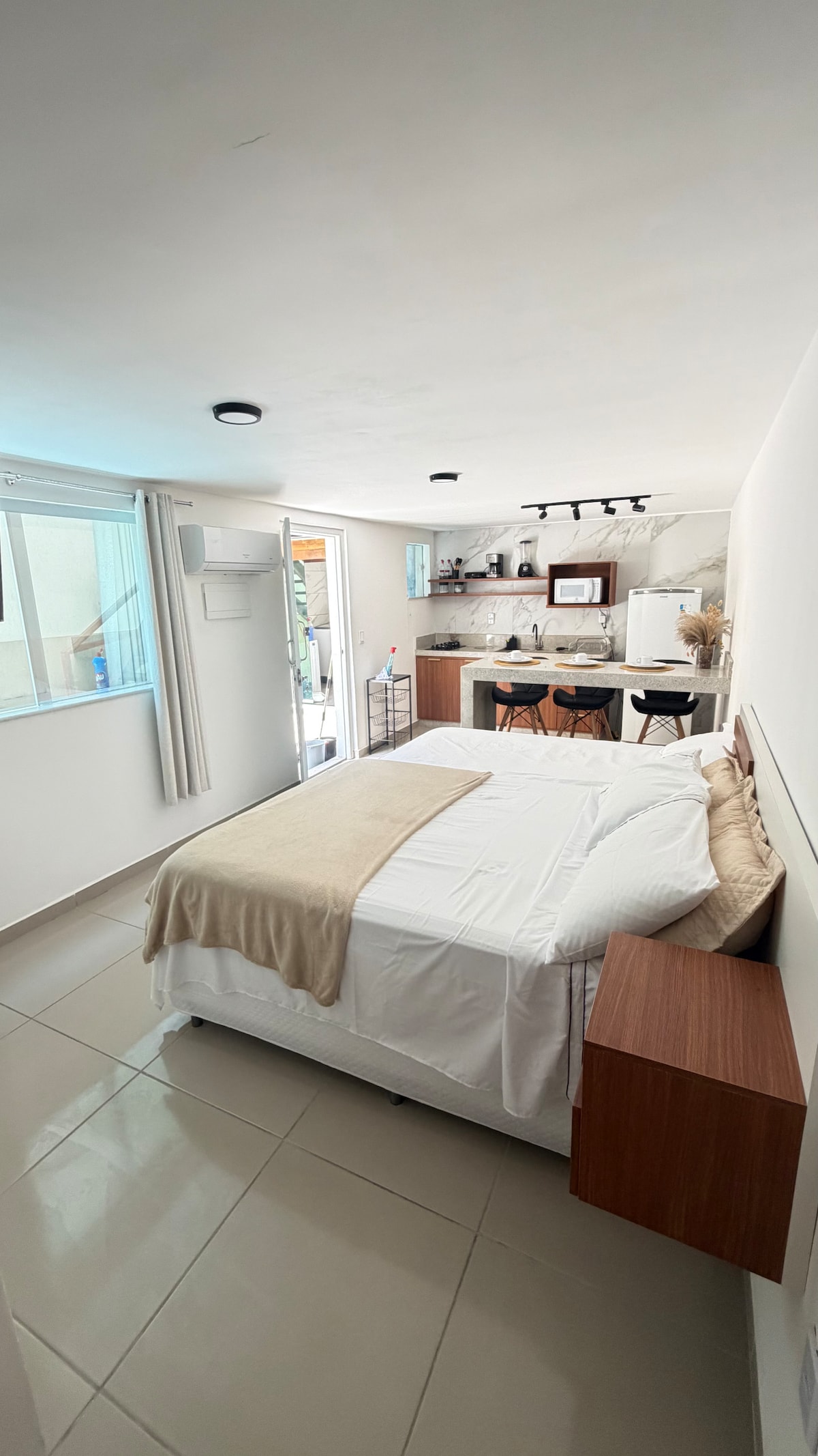 Relaxe em um ambiente familiar, tranquilo, próximo à praia (400m), ao mercado do pescador (500m) e ao ponto de vans que destina aos principais pontos turísticos da cidade. Nosso loft fica em um condomínio seguro e conta com estacionamento privativo, ar condicionado, Wi-Fi, tv smart com Netflix, microondas, geladeira, cama de casal com colchão de solteiro integrada, kit básico de cozinha e roupas de cama confortáveis, tudo isso para proporcionar um melhor conforto possível aos nossos hóspedes.