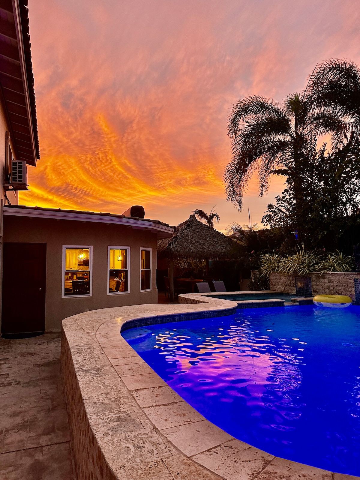 Welcome to our Unique Villa, fully modern, offering Breathtaking sunset views over Palm Beach’s High Rise ✔️ Amazing Views – Sunset & Skyline View of Palm Beach ✔️ 5 min drive to Eagle and Palm Beach ✔️ Infinity Pool, Heated Jacuzzi, Sun Lounges, Seating for 10, BBQ Grill, covered Patio ✔️ Fully Equipped Kitchen (Oven, Cooktop, Nespresso, Airfryer) ✔️ Entertainment - 55” 4K Smart TVs with Amazon Prime Video, Disney+, Netflix ✔️ Beach Essentials – Beachchairs, towels and cooler