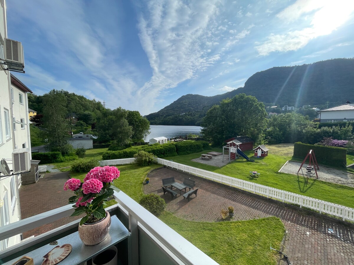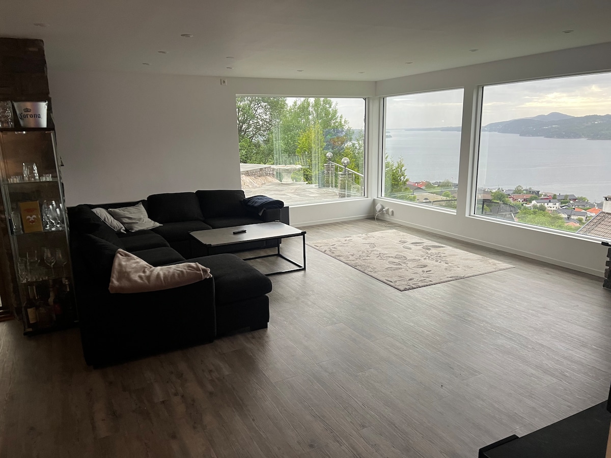 Lad batteriene på dette unike og rolige overnattingsstedet. Nyt sjø utsikten enten ved kjøkkenbordet, stuebordet, i utestue eller på en av hagens flotte uteområder. Tenn i peisen som er gjennomgående fra kjøkken til stue, eller ta deg et deilig bad i det gammeldagse badekaret med løveføtter. Huset ligger i et fredelig strøk, samtidig som det er sentralt. Kun 30 min. å kjøre til Bergen, og 10 min. kjøring til Knarvik senter. Gåavstand til nærmeste Kiwi butikk.