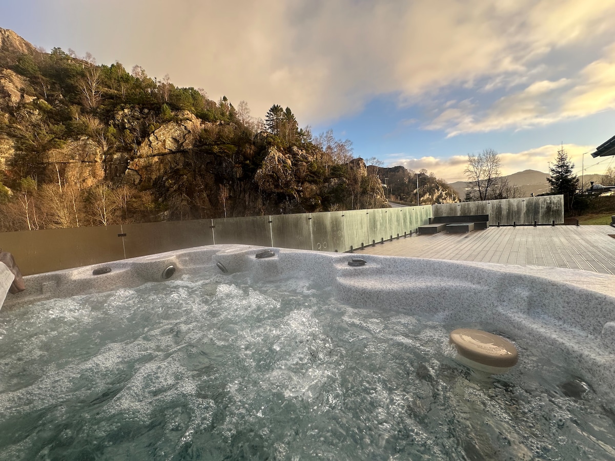 Ideal for two families or one large family, with two separate cabins. Secluded waterfront location with sun all day, in Meland, 40 minutes north of Bergen. A great base for Western Norway, including fjord cruises, the Bergensbanen railway, and the Bergen–Flåm train journey. Enjoy a wood-fired outdoor hot tub. Nearby are hiking, islands, beaches, and fishing. Herdla is reachable in 10 minutes by boat. A boat (25 hp) and three SUP boards are included (boating experience required).