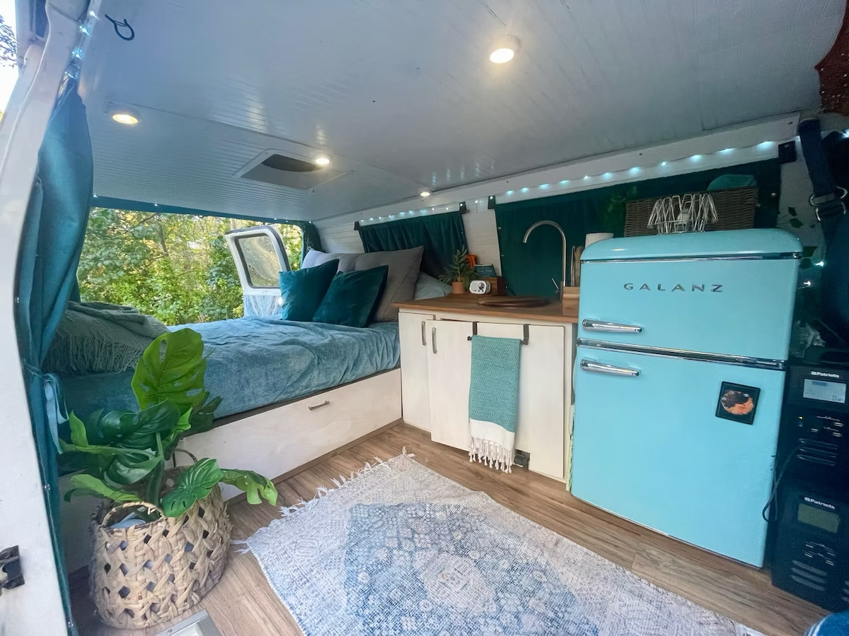 Meet Cosmo, your boho blue vintage camper van from 1986, parked at Restoria Hostel, an active travelers’ sanctuary minutes from Downtown Atlanta. Enjoy a cozy sleeping space, refrigerator powered by a dedicated generator, cooking essentials, and a welcome guide. Relax by the patio set and fire pit. Guests have access to shared bathrooms and common areas inside the hostel. Perfect for a simple van-life experience in a social, community setting.