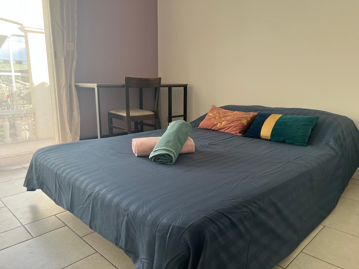 Fully furnished apartment in a secure residence on the second and last floor. A bathroom with towel dryer, a separate toilet with clothes rack, a living space with kitchen area: washing machine, dishes, coffee maker, toaster. A dining area that will allow you to enjoy a superb view of the sea. A cabin bedroom with a double bed, a mezzanine with a double bed and a sofa bed in the living room. Wifi (fiber). TV. Bedding. Bike storage. Parking nearby.