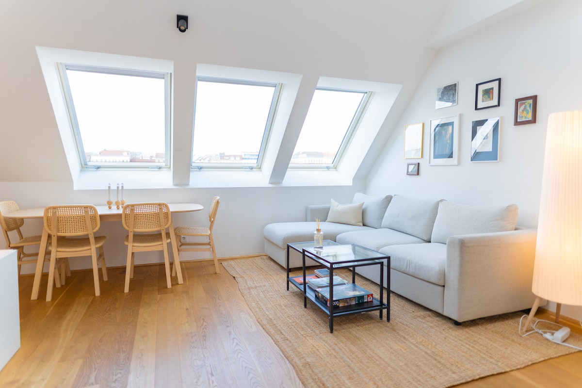 Step into the comfort of your stylish, sun-soaked rooftop apartment, with outstanding facilities in central Vienna. Just a few steps away from the vibrant Radetzkyplatz & Danube River, the apartment promises an urban retreat, walking distance to the city's best restaurants, stores, attractions & landmarks. Authentic Vienna living at its best! ✔ King Bed + Sofa Bed ✔ Open-Plan Living Area ✔ Fully Equipped Kitchen ✔ Private Balcony ✔ Smart TV ✔ High-Speed Wi-Fi ✔ Air Conditioning Read more ↓