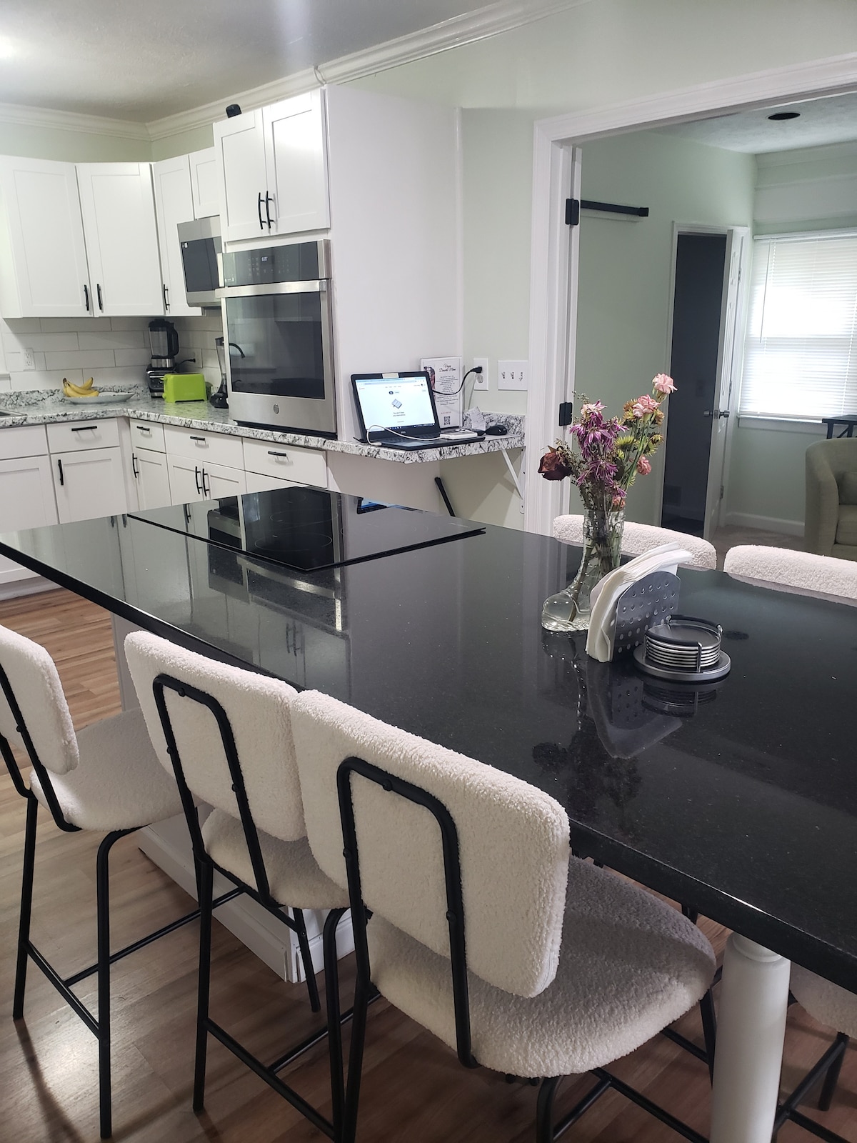 50 inch 4k tv in the living room with gig speed internet that is perfect for work, gaming or watching live tv on Youtube TV! The location is perfect and is walking distance to Austell Square, a 10 minute drive to Six Flags, and 15-20 minutes from downtown Atlanta. There are 3 beautiful bedrooms, upgraded memory foam beds, with a 42 inch 4k tv in each room, 2 cozy bathrooms and a drop dead gorgeous kitchen. Come and see for yourself!