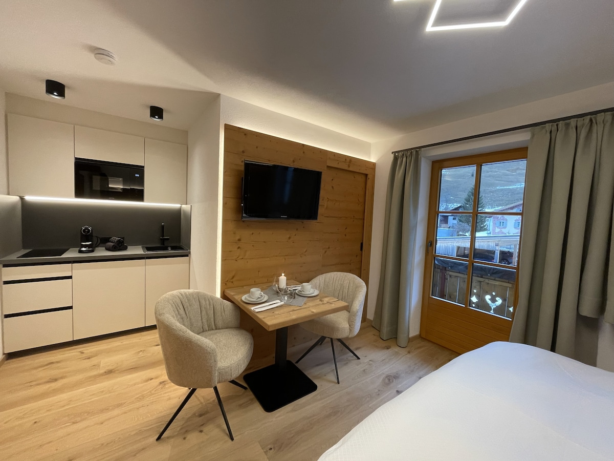 Komplett NEU renovierte Ferienwohnung Gstoder mit Blick zur Talabfahrt und Talstation für 4 Personen 1 Schlafzimmer für 2 Personen mit einem sehr großen Balkon, mit 2 Kabel-Flach-TV, W-LAN gemütliches Wohnschlafzimmer mit 2 getrennten Betten, DU/WC. Küche mit Ceran Kochfeld, Kühlschrank inkl. Gefrierfach, Mikrowellenherd, Nespresso - Kaffeemaschine, Toaster und Wasserkocher. Ohne Frühstück (Verpflegung) Bettwäsche, Handtücher, Endreinigung, Warmwasser und Heizung sind im Preis enthalten.