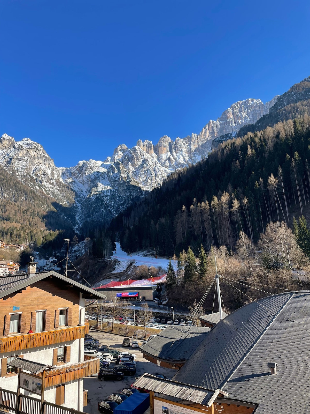 L'appartamento Rosa è una graziosa mansarda con travi a vista posta al terzo ed ultimo piano, servito da ascensore, di una storica casa della piazza di Alleghe. Posizione ottima per raggiungere a piedi tutti i principali servizi come market, farmacia, bar, ristoranti, fermata del bus. A soli 200 metri dalla partenza degli impianti di risalita. Con i suoi 45 mq ben disposti, l'appartamento Rosa è ideale per una coppia ma può ospitare fino a 3 persone.