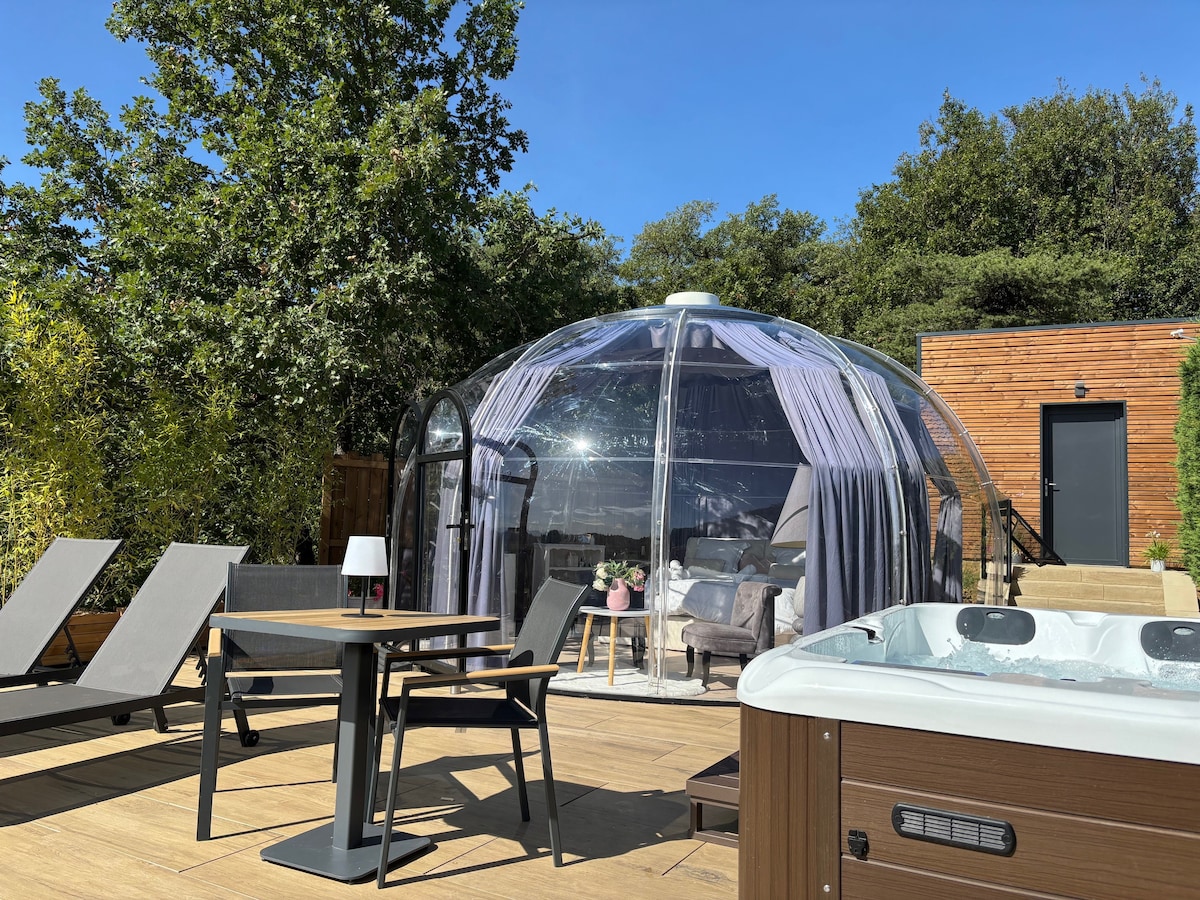 " La géode perchée " Aussi sur Google. Connectez vous à la nature le temps d'un séjour insolite dans notre belle géode posée sur une grande terrasse en bois à 3 m du sol au milieu des arbres en sud Ardèche, 3 km du centre de Les Vans - Face aux vignes et la montagne lointaine , profitez de votre jacuzzi à volonté ! - Voyagez léger, draps et serviettes de toilettes fournis - Le petit déjeuner 10€/pers/jour sera payé sur place, GRATUIT si séjour réservé sur google ou LBC A bientôt " Christian