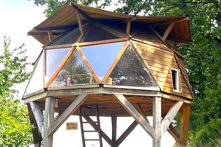 Géode dans les arbres avec jacuzzi sur la terrasse