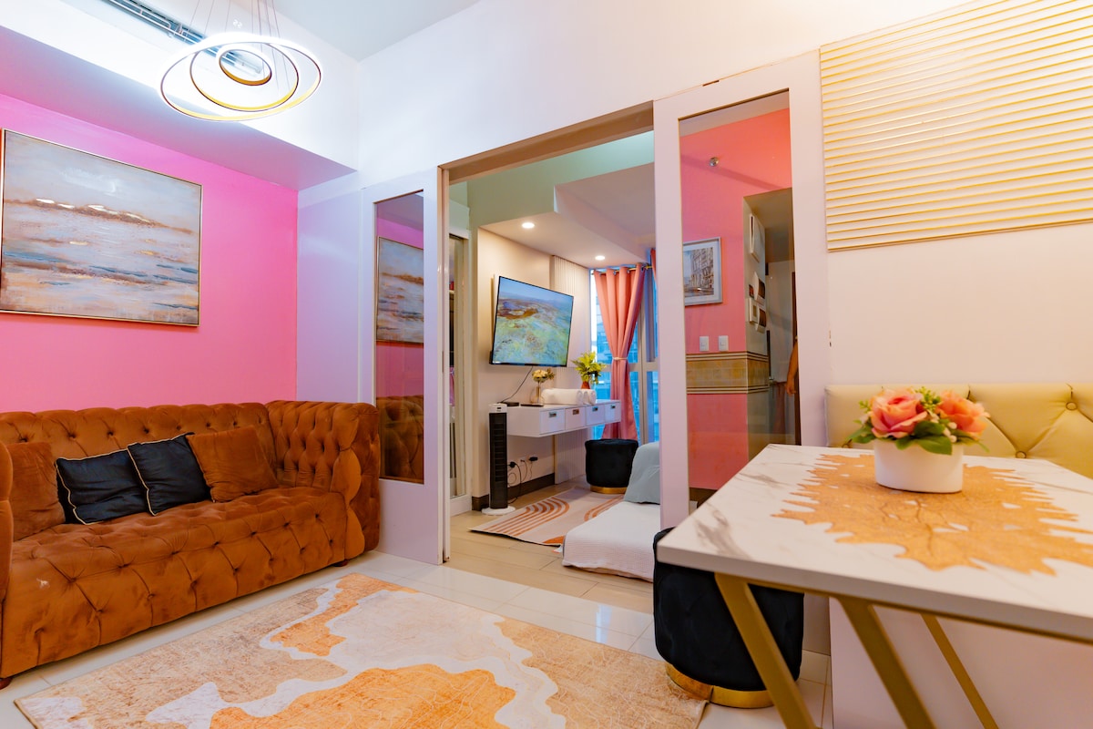 Experience style and convenience in this modern BGC studio! Just a 2-minute walk to Venice Canal Mall, it’s perfect for work and leisure. Enjoy a hidden pullout queen bed, an expanding table for dining or work, and an 84” projector for a cinematic experience. Steps from cafes, groceries, and restaurants, everything you need is within reach. Whether you're unwinding, exploring, or working remotely, this cozy retreat is the ideal staycation spot! 🎬🎮✨