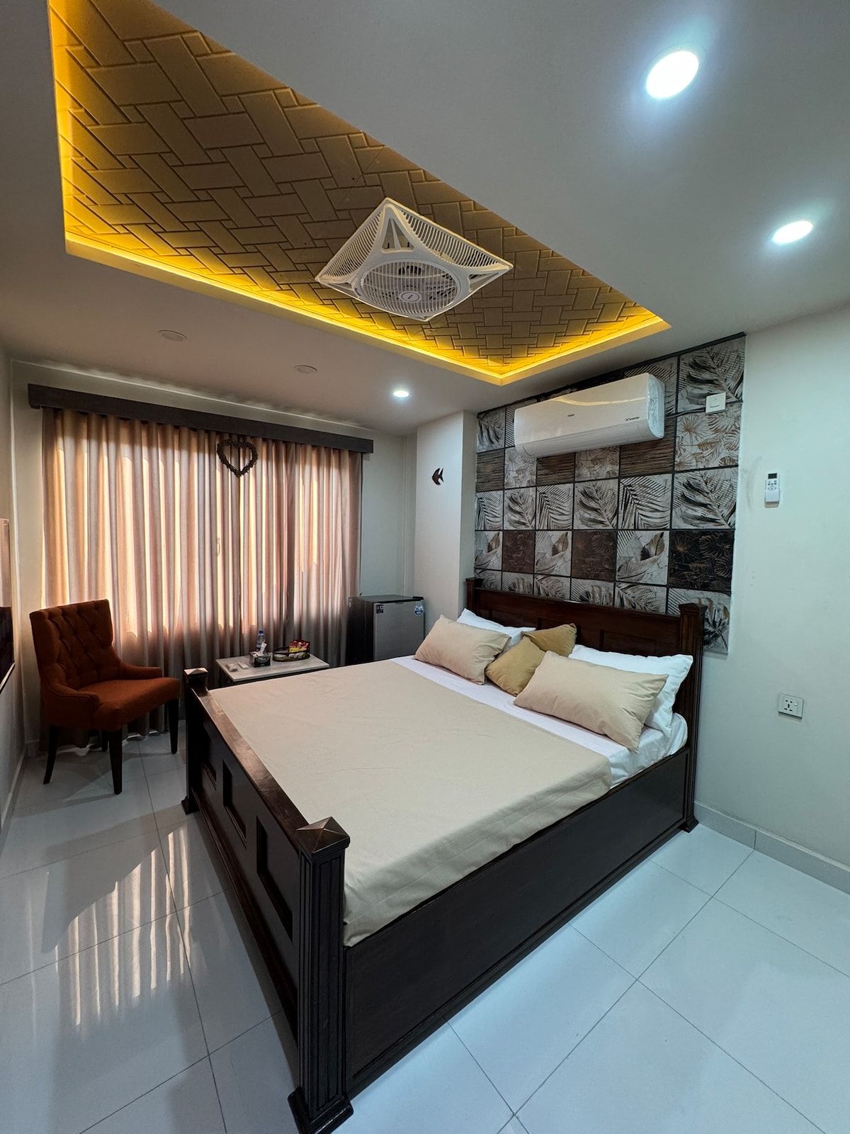 Experience 5-star hotel living in this exclusive Presidential Suite located in Bahria Heights 1. Designed for business VIPs and couples, this luxury apartment offers privacy, elegance, and premium comfort in a secure, upscale setting. Featuring hotel-style interiors, refined décor, ambient lighting, and high-end furnishings, the suite delivers a premium executive stay with a calm, sophisticated vibe.