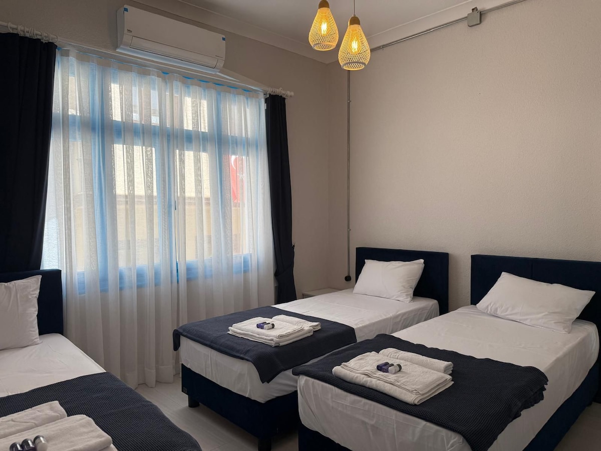 Otelia Pansiyon is located in the centre of Ayvalık. All our rooms have air conditioning and free Wi-Fi. Our rooms feature a flat-screen smart TV, mini fridge, wardrobe, table, and chairs, as well as a private bathroom with towels and toiletries. Guests can benefit from the garden with a seating area where they can enjoy their free time. Our hostel has a shared kitchen for preparing meals and snacks. We are a few minutes walk away from the famous street market and cafes, restaurants, shops.