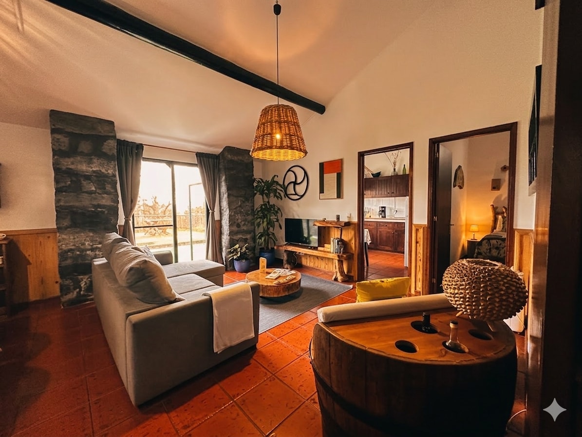 Perto de tudo, por estar centrada na ilha. No paraíso do campo, rodeada por terrenos agrícolas, com a proximidade da vila e do mar. Casa integrada em quinta, a 10 minutos do centro da vila e também situada perto da SCUT, o que permite fácil acesso.