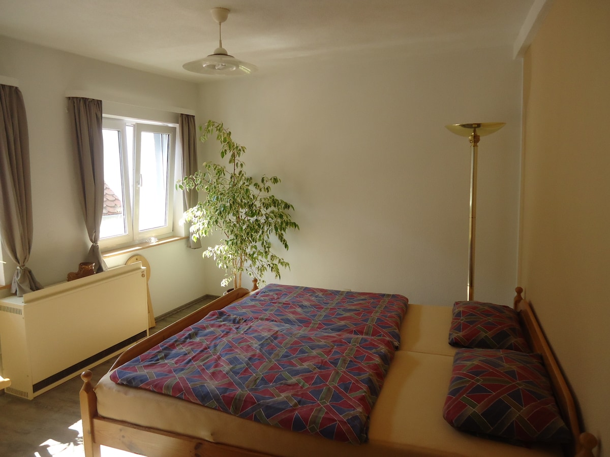 Wir bieten im Erdgeschoss unseres 350 Jahre alten Fachwerkhauses drei Schlafzimmer, ein Bad mit Dusche, Wanne und WC sowie eine eingerichtete Küche (ca. 100 qm). Die Wohnung der Gastgeber befindet sich im Obergeschoss. W-Lan, Waschmaschine und Trockner können genutzt werden. Der Innenhof steht (derzeit durch Bauarbeiten beschränkt) zur Erholung zur Verfügung.