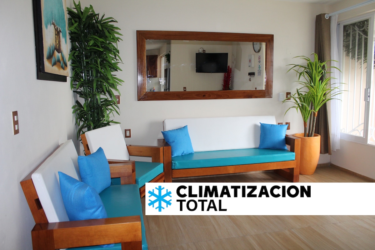 ❄️ TOTALMENTE CLIMATIZADO ❄️ Acogedor departamento estilo contemporáneo, ¡perfecto para viajeros que buscan tranquilidad y una buena ubicación dentro de la ciudad! A solo 9 minutos de la playa, ideal para estancias cortas o largas. ✅ Ubicado cerca de la avenida principal (2 min en auto). ✅ Entrada independiente para total privacidad ✅ Climatización en todas las áreas para tu confort. ¡Olvídate del calor mientras descansas! ✅ 1 cajón de estacionamiento asignado dentro de la propiedad.