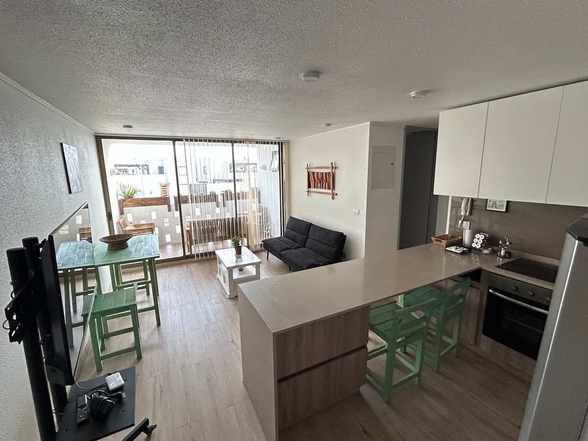 Departamento ubicado a dos cuadras de la playa principal de restaurantes y pub, donde pasarás una estadía placentera, equipado con todo lo necesario para disfrutar de las hermosas playas de bahía inglesa