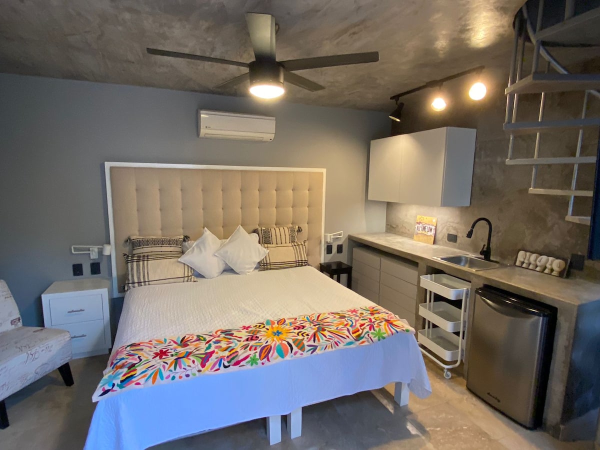 Estudio pequeñito y acogedor en (ultimo) piso con escaleras angostas, para 1 o 2 personas, locación excepcional en San José del Cabo, cruzando la calle esta la playa y caminando puedes llegar al super mercado, Restaurantes y el área de la alberca es un plus para relajarse. Cozy studio for 1 or 2 persons, on top floor (last floor) no elevator, perfectly located 3 minutes from Beach, walking distance to downtown, Restaurants and super market and the pool area is a very relaxing place.