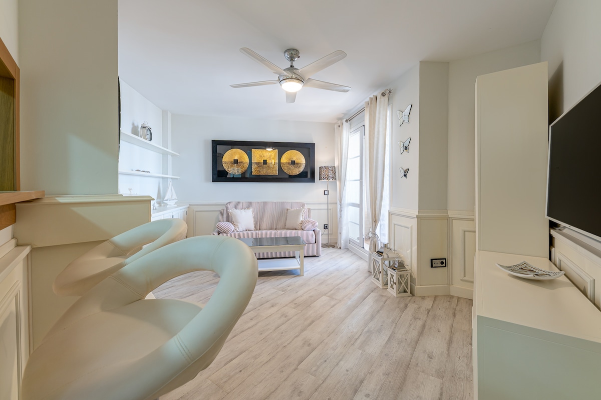 From Torremolinos Holiday Rentals, we present this magnificent apartment with private access to the beach. It is located just a minute\'s walk from Bajondillo beach and five minutes from La Carihuela beach. Discover all its details below:<br><br>Newly renovated modern apartment with impressive terrace and sea views<br><br>This recently renovated apartment combines comfort and style in a bright and cosy space.