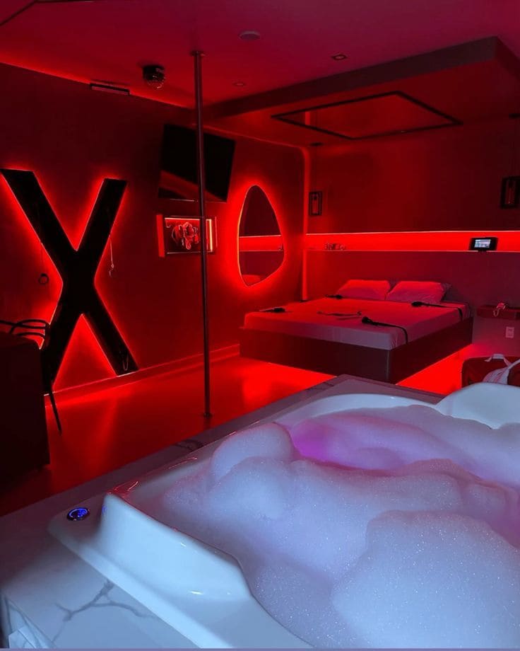 ❤️🔥 Descubra a 1001 Sombras de Amor — Jacuzzi Experience, refúgio sensual no bairro Tabuleiro – Camboriú (SC), a poucos minutos de Balneário Camboriú. 💎 💎Jacuzzi privativa, cama king-size inquebrável, espelho no teto, barra de strip, cruz de St andrée e iluminação envolvente criam o cenário perfeito para libertar o prazer e viver o desejo sem limites. 🎬 92" Cinema virado para a cama com Netflix, Prime Vídeo, Disney+, Spotify. 💋 Aqui, o luxo encontra a paixão — e a imaginação é o limite.
