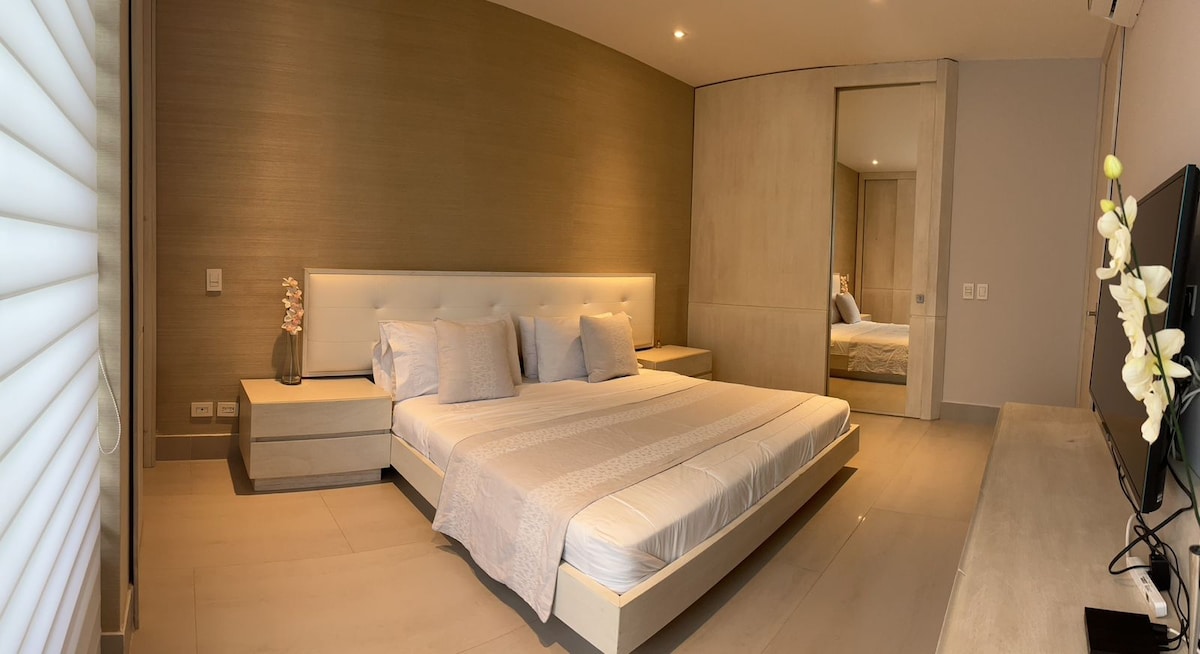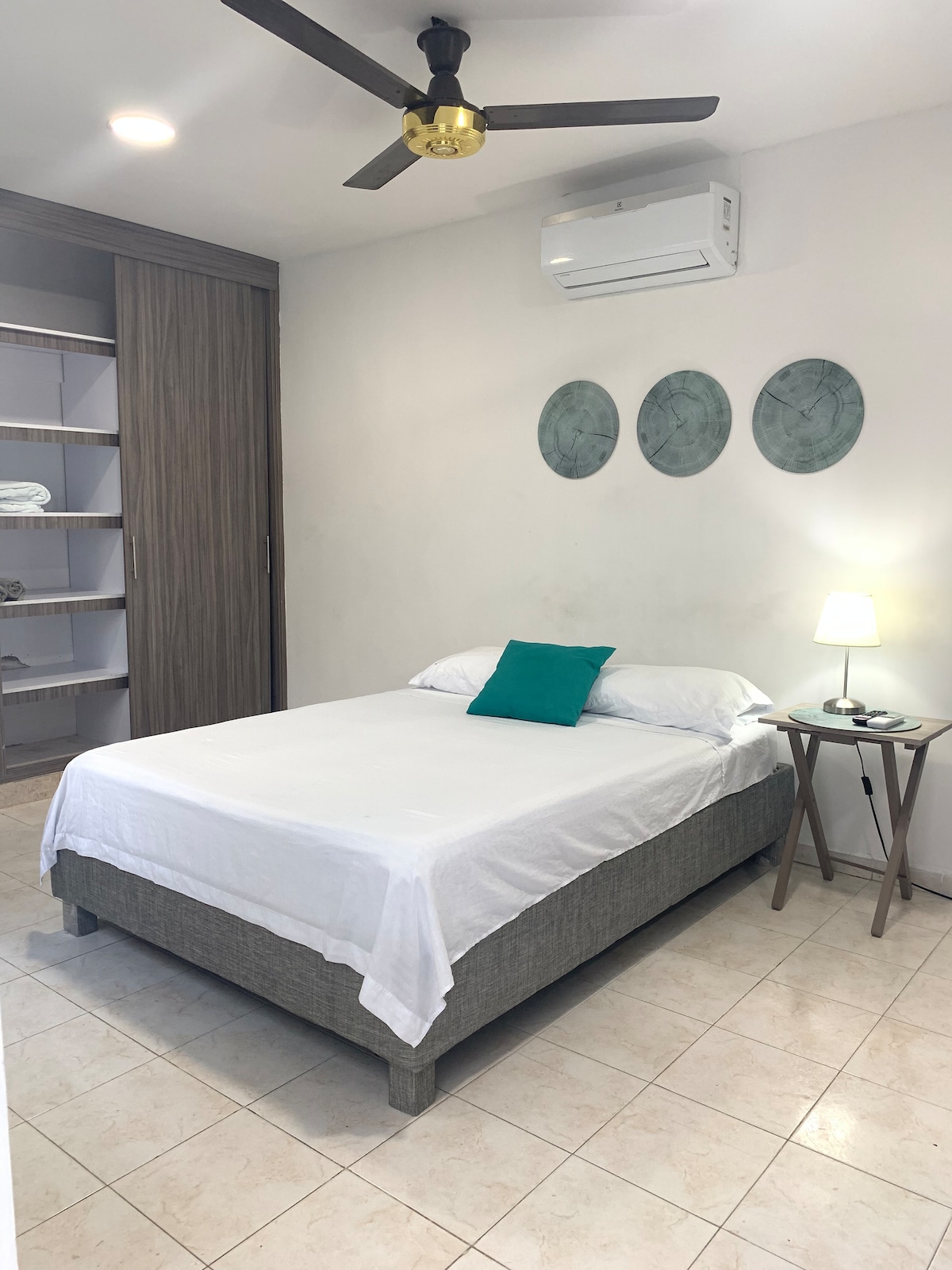 Apartamento recién renovado con impresionantes vistas al Mar Caribe. Disfruta del confort con aire acondicionado en todos sus espacios, perfecto para estancias cortas y largas. Ubicado cerca de la ciudad antigua, con acceso a la playa frente al edificio y piscina infinita. Además, cuenta con comodidades como gimnasio, internet de alta velocidad (350 megas de Claro), lavadora, secadora, cocina completamente dotada y parqueadero privado. ¡Tu hogar junto al mar y la historia espera por ti!