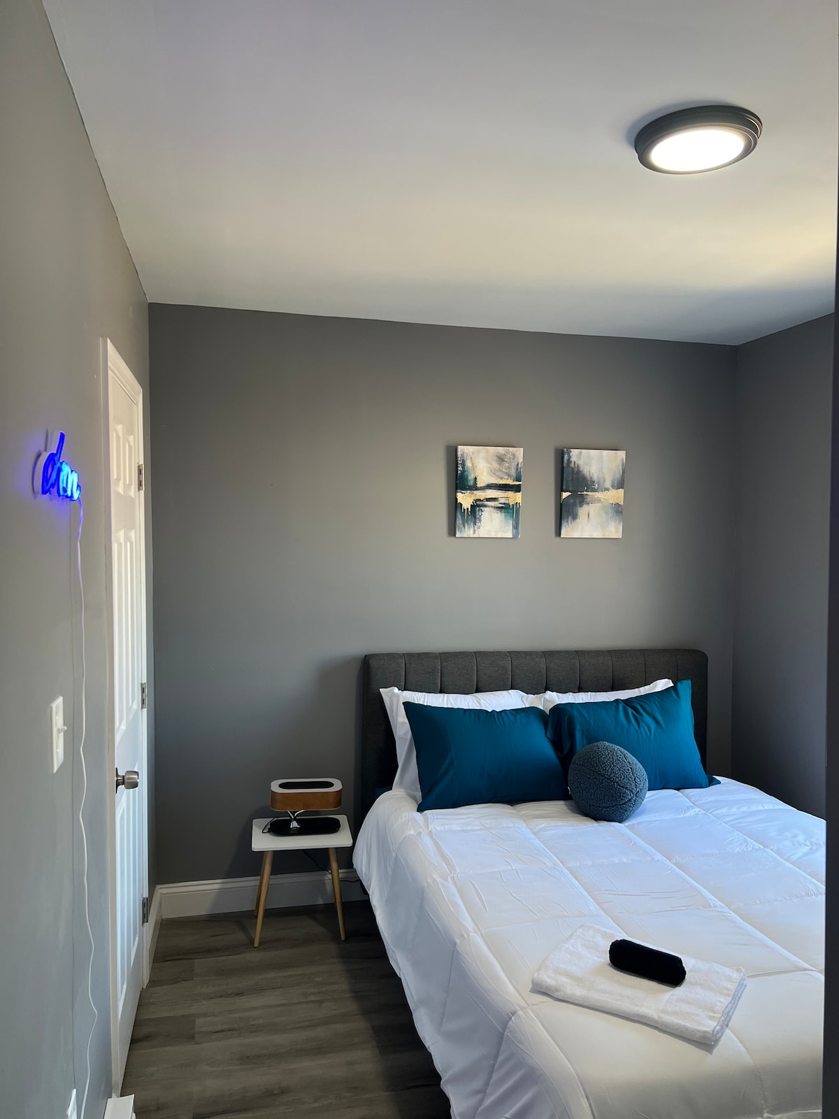 Escape to a peaceful private suite designed for comfort and relaxation. Enjoy your own entrance, a full kitchen stocked with essentials, and a private bathroom for complete convenience. The cozy queen-size bed and smart TV make it easy to unwind after a long day. Whether you're visiting for work or leisure, you’ll have everything you need in this quiet, self-contained space, modern amenities, privacy, and a calm atmosphere that feels like your own home away from home.