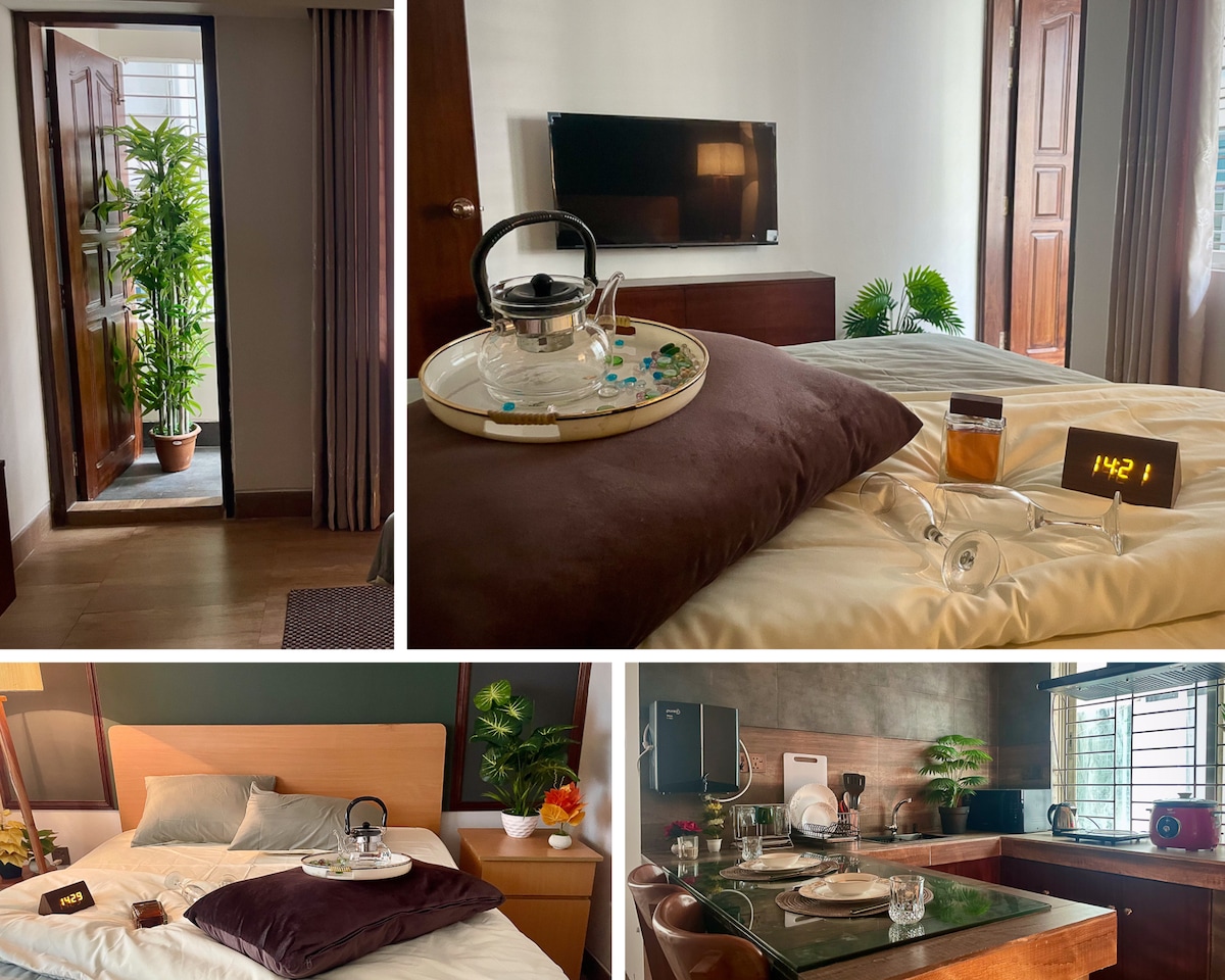 Studio apartments are now in Dhaka. It is an apartment itself having a private entrance. The room is fully furnished with modern equipage AC, fridge and smart TV. Open kitchen with an infrared burner and all short of cooking amenities are available. There is a tiny dining table, balcony & an attached bathroom with a geyser facility, etc. We have included masks, sanitizer & room sanitizing.