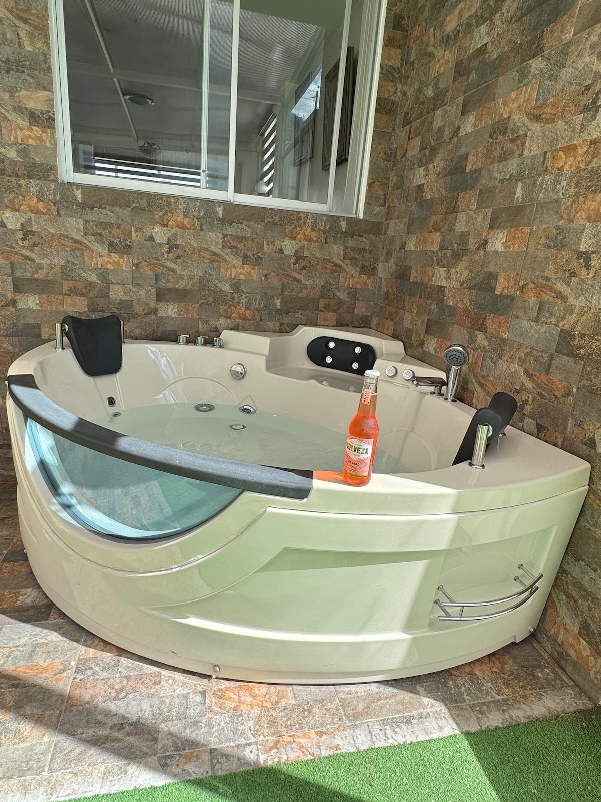 Relájese en familia en esta casa con parqueadero privado, jardín, jacuzzi y terraza a disposición. Nos encontramos a 5 minutos del centro de Baños. Aqui podrás disfrutar de una relajante estadía mientras disfrutas de una taza de café y un cálido baño en nuestro jacuzzi al aire libre, contamos con toallas para uso dentro y fuera del alojamiento sin costo alguno. Un lugar ideal para nómadas digitales, nuestro dormitorio principal tiene un escritorio y wifi de alta velocidad. ¡Bienvenido!